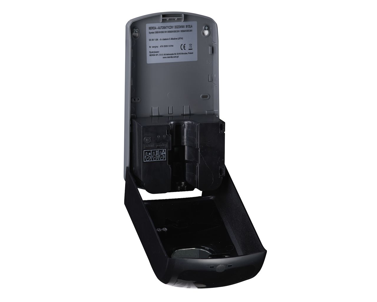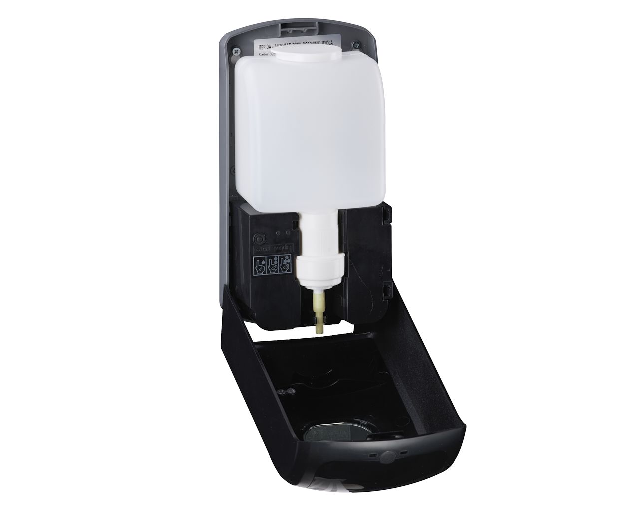 Bezdotykowy automatyczny dozownik mydła w pianie MERIDA ONEna jednorazowe wkłady z mydłem w pianie, w tym z mydłem dezynfekującym, czarny