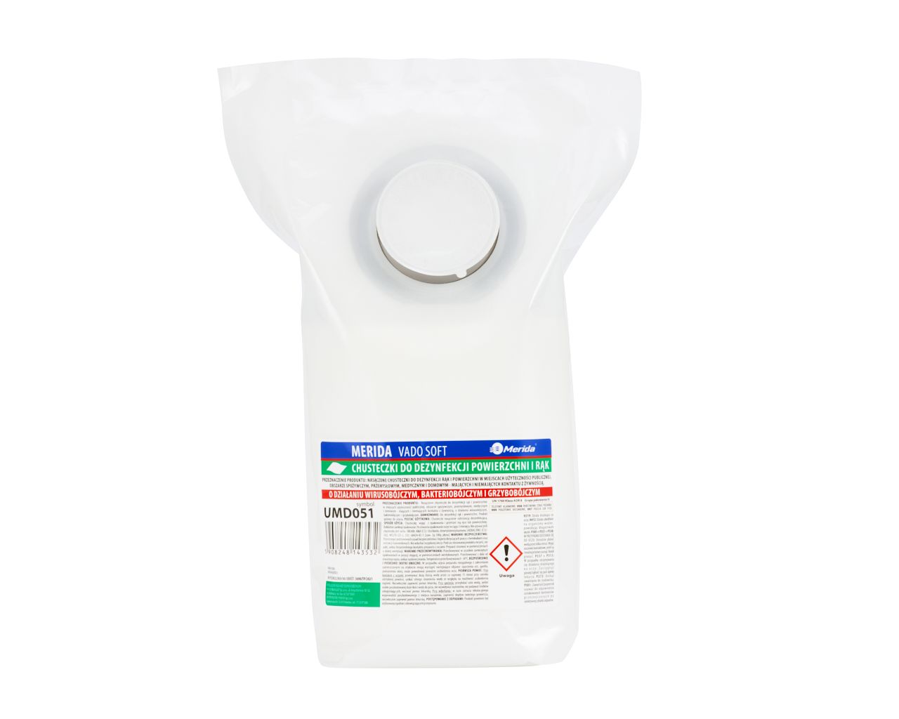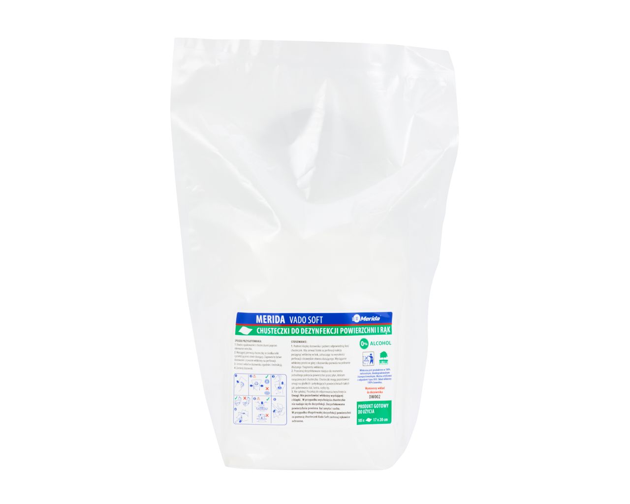Chusteczki nasączone do dezynfekcji rąk i powierzchni MERIDA VADO SOFT105 listków, wkład do dozownika DW002
