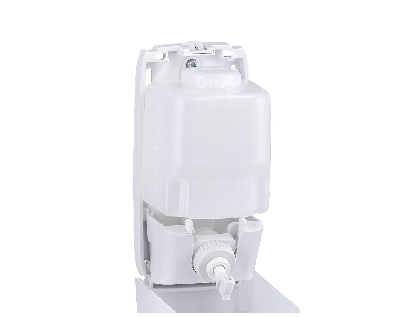– dozownik MINI ze stałym zbiornikiem na mydło w płynie o pojemności 500 ml – co daje ca 500 porcji mydła