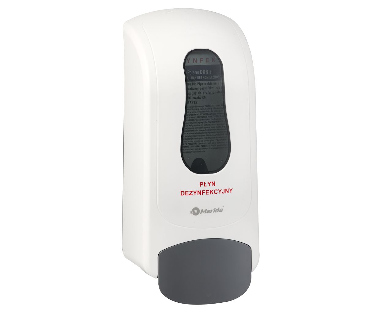 Dozownik płynu dezynfekcyjnego MERIDA ONE na wkłady MERIDA ONE DEZYNFEKCJAbiały