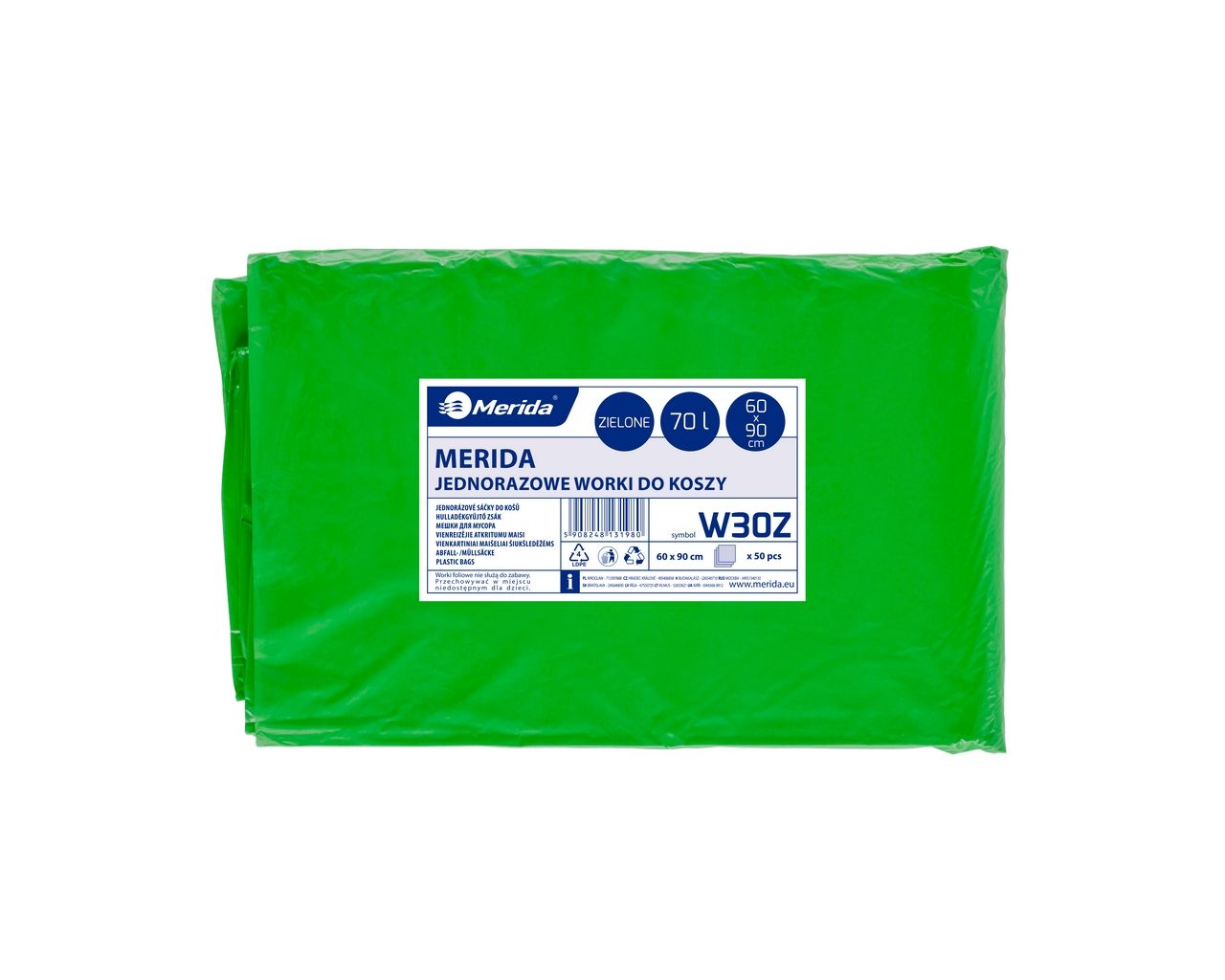 Jednorazowe worki na śmieci MERIDA60 x 90 cm, pojemność 70 l, paczka 50 szt., ZIELONE