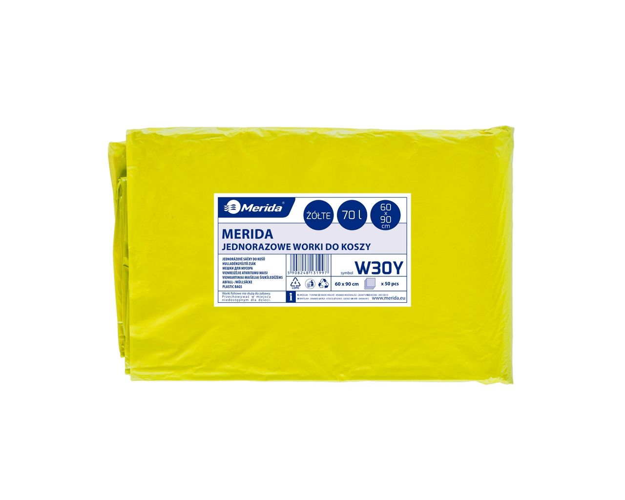 Jednorazowe worki na śmieci MERIDA60 x 90 cm, pojemność 70 l, paczka 50 szt., ŻÓŁTE