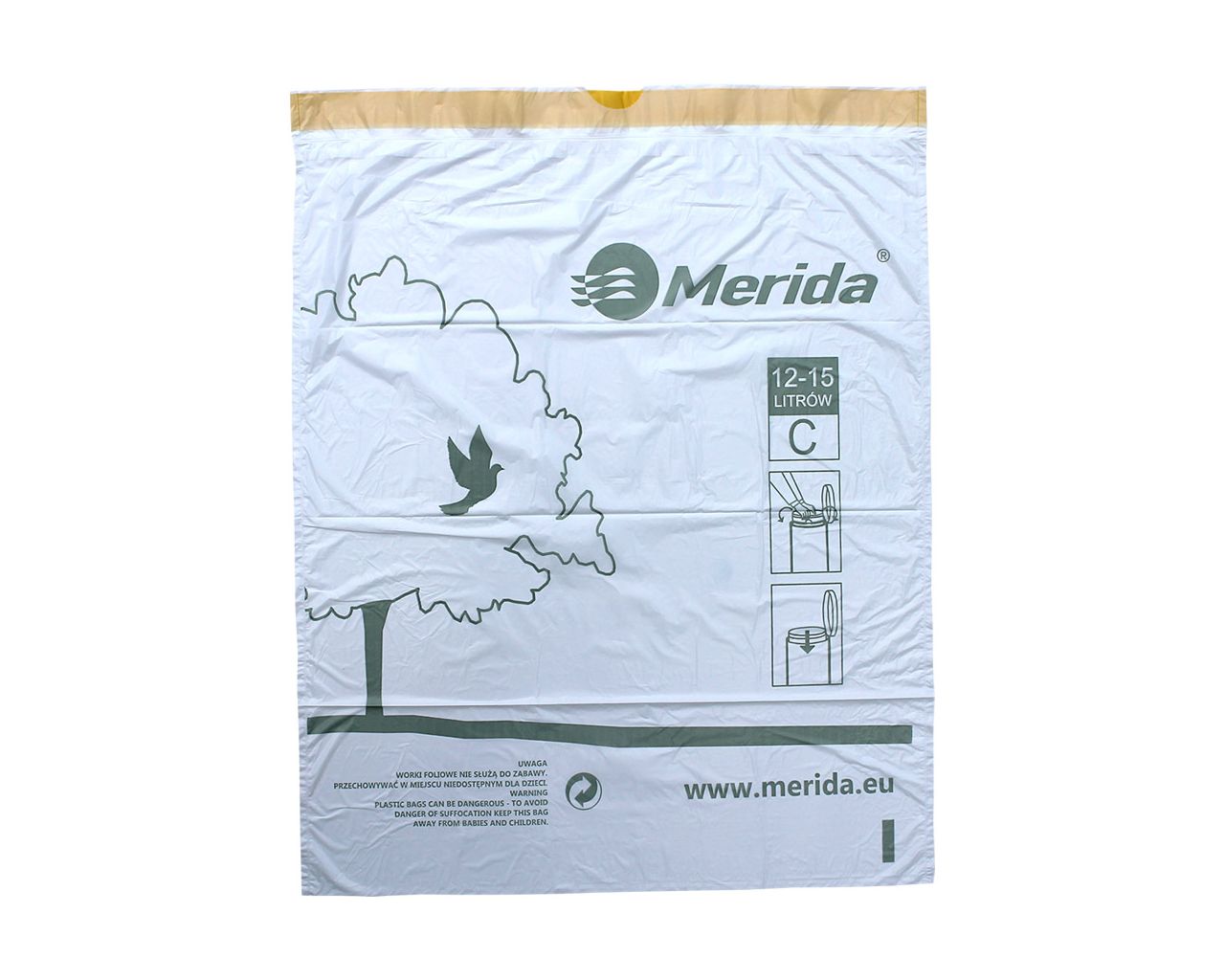 Jednorazowe worki na śmieci z taśmą ściągającązapachowe MERIDA TOP, pojemność 12-15 l, rolka 20 szt., BIAŁE
