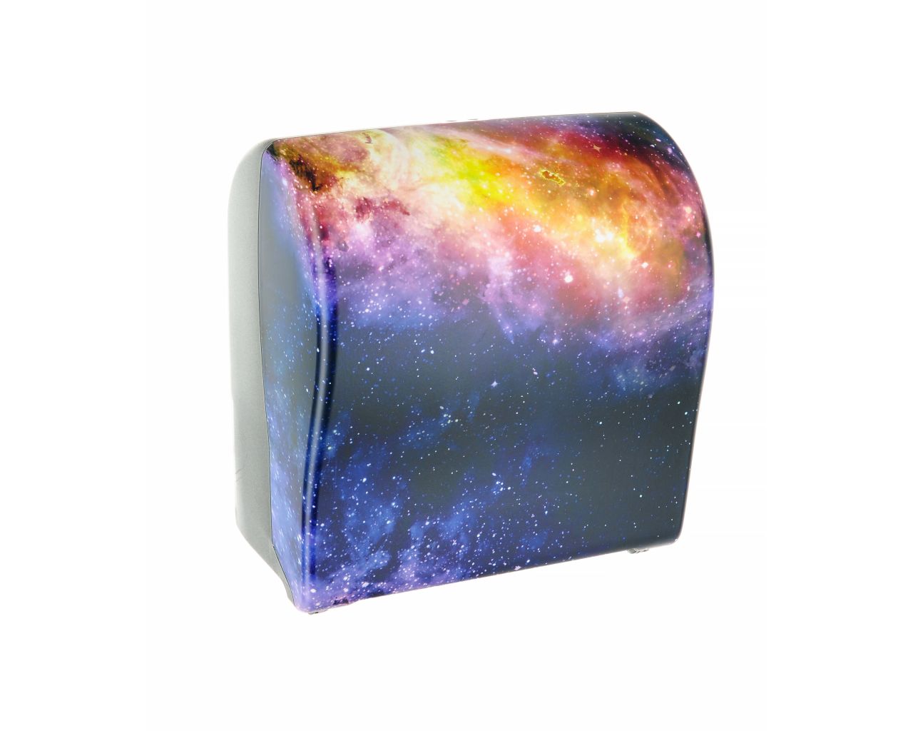 Mechaniczny podajnik ręczników papierowych w rolach, który mimo swoich niewielkich rozmiarów mieści dużą rolkę ręcznika o długości 250 metrów, co przy cięciu co 24 cm, daje ponad 1000 ręczników z rolki! Po prostu wkładasz rolkę i na długi czas zapominasz o uzupełnianiu. Kolejną zaletą urządzenia jest jego mechanizm tnący, niezwykle prosty w swojej konstrukcji, a przez to niezawodny i skuteczny, pracujący bardzo płynnie i delikatnie. Nóż tnący wykonany jest z super twardego, odpornego na tępienie i odkształcenia tworzywa sztucznego. Poddany przez nas testom, nie stracił nic ze swoich właściwości, nawet po 2 milionach cięć. Boki urządzenia wykonane z transparentnego tworzywa, zapewniają łatwość kontroli zużycia ręcznika. Całe urządzenie wykonane jest z wysokiej jakości tworzywa ABS. Odporny na działanie UV. Zamykany na kluczyk.