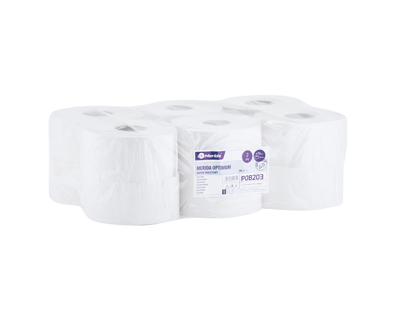 Papier toaletowy MERIDA OPTIMUMBIAŁY, średnica 19 cm, długość 140 m, dwuwarstwowy, zgrzewka 12 szt.