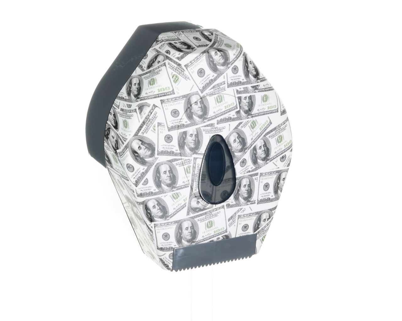 Pojemnik wykonany z wysokiej jakości tworzywa ABS. Odporny na działanie UV. Posiada ozdobne okienko w kolorze szarym, które umożliwia kontrolę ilości papieru w pojemniku. Można w nim stosować papier o maksymalnej średnicy roli 19 cm. Pojemnik zamykany na kluczyk.