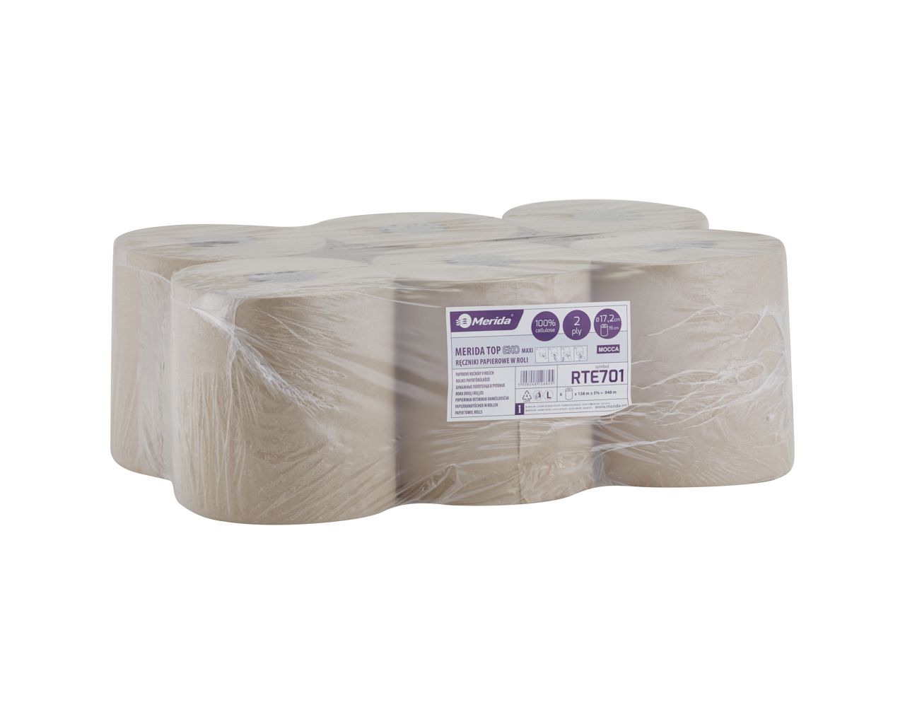 Ręczniki papierowe w roli MERIDA TOP EKO CENTER PULL MAXIpiaskowe, dwuwarstwowe, długość 158 m, opakowanie 6 rolek