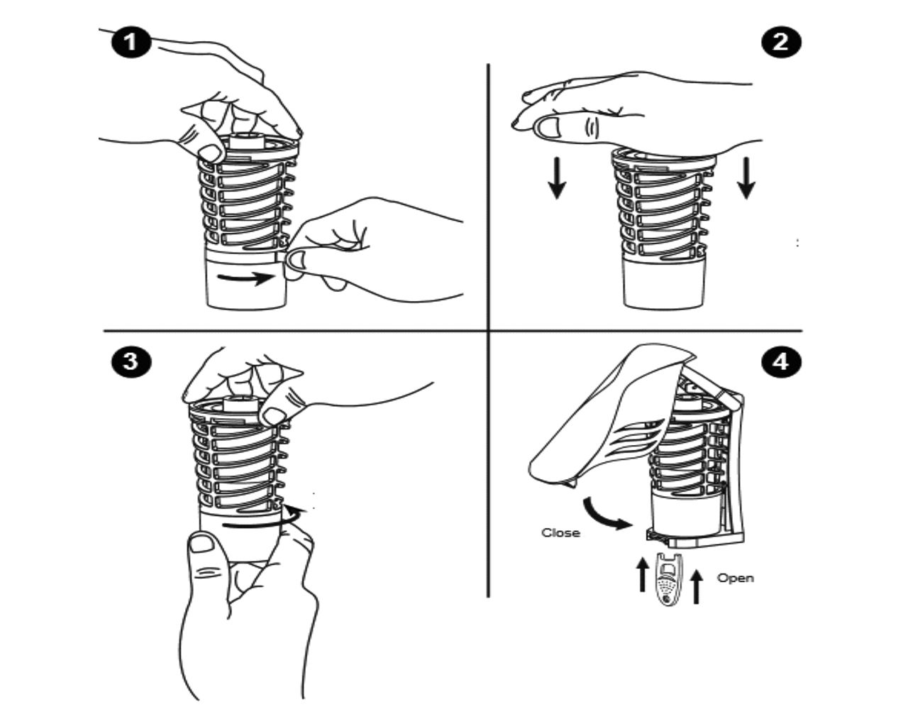 Wkład zapachowy do odświeżacza powietrza GJB704 o kompozycji zapachowej złożonej z aromatów bergamotki, neroli i róży dopełnionych nutką wanilii. Jeden wkład zapewnia do 60 dni odświeżania pomieszczeń o powierzchni do 50m ³. Uwalnianie zapachu następuje w sposób ciągły, wymuszone jest jedynie przez naturalną cyrkulację powietrza w pomieszczeniu (bez baterii, bez aerozoli, bez emisji szkodliwych gazów). Wykonany z tworzywa nadającego się do recyklingu (PP). Przed użyciem należy wyjąć wkład z folii ochronnej; usunąć banderolę zabezpieczającą (rys.1); wcisnąć do oporu górną część wkładu (rys.2) a następnie ją przekręcić (rys.3) po czym odbezpieczony wkład należy umieścić w odświeżaczu (rys.4).